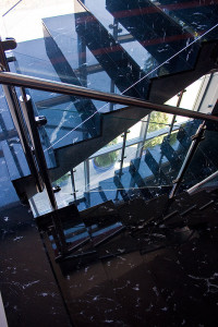 Schody z granitu, marmuru i konglomeratu, wykonane na wymiar do wnętrz prywatnych i użytkowych.